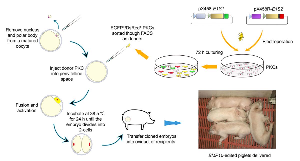 1. 创建了双荧光筛选结合体细胞克隆法高效制作基因编辑猪的技术平台
