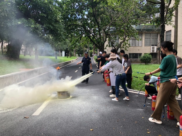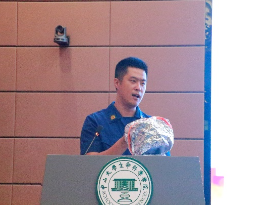 活动伊始,余泽斌站长在生命科学楼1号楼124国际会议厅为师生们带来了一场生动的“火场疏散逃生与安全自救”专题讲座。他结合火灾案例,深入浅出地讲解了疏散逃生的技巧、火场自救的有效方法以及自救器材的选择与使用。同时,余站长还亲自演示了灭火器的使用方法,并详细解释了各种防护装备的实际用途,使参训人员对消防安全知识有了更直观的理解。