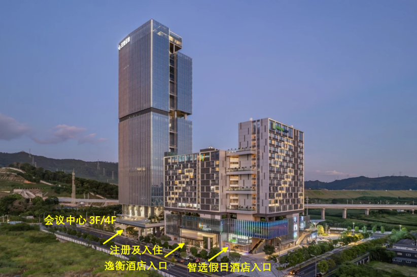 深圳宝安机场-会场:出租车,约1小时;公共交通,地铁11号线(松岗站)-地铁6号线(光明站)-地铁6号线直线(圳美站)-打车,约1.5小时;