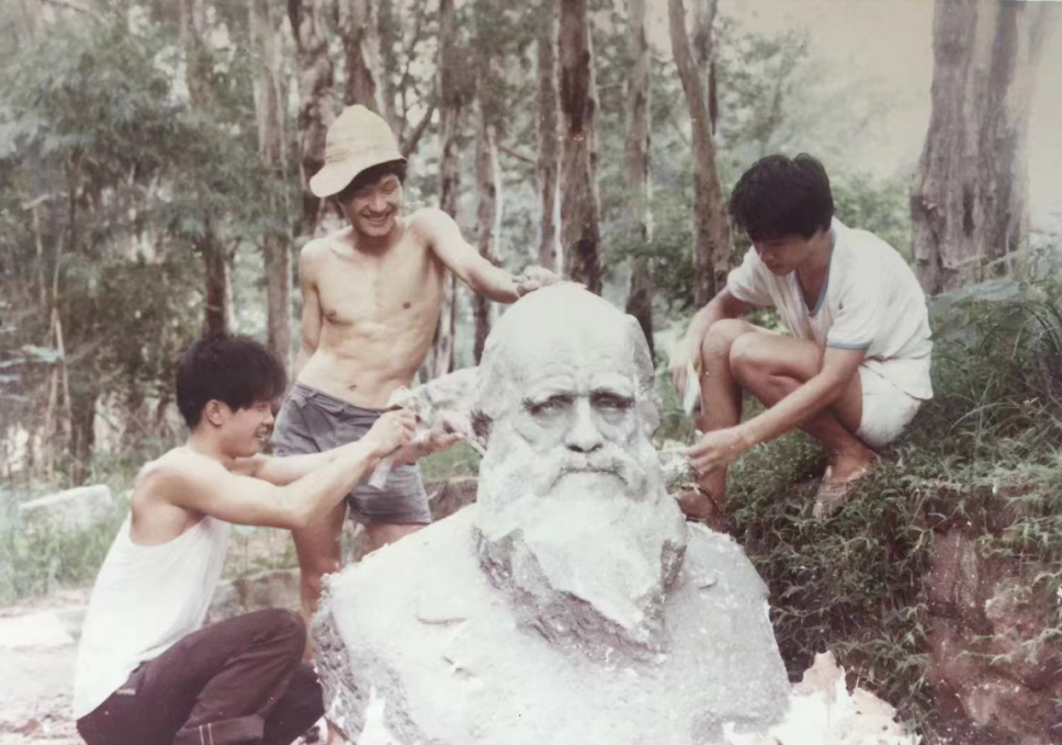 因此,美院82级雕塑系的李学迅先生成为项目的牵头人,而吴忠业和叶卫农校友成为了主要经办人,常常去美院观摩雕像创作过程和跟进进度。在达尔文像的具体制作过程中,潘教授给予了学生们大量专业指导。虽然很难估算出这尊雕像具体花费,但它展现了跨学科的团队合作精神,也建立了两所学校之间无价的友谊,弥足珍贵。