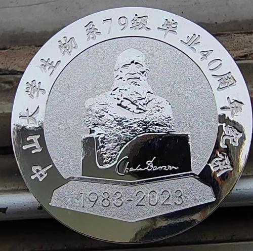 图为生物系79级毕业40周年纪念章,由林向阳校友提供