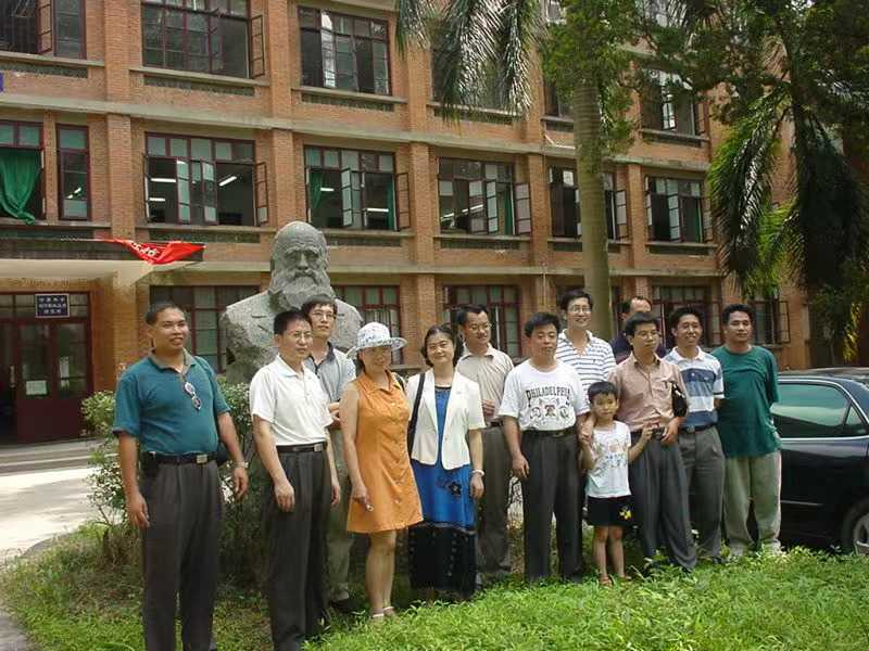 图为生物系79级校友于2001年返校时留影,由生物系79级校友提供