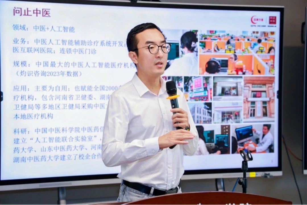 深圳问止中医健康科技有限公司董事长崔祥瑞校友介绍了问止中医的发展历程、业务与应用、研发成果与转化等,指出中医+AI看诊模式在中医现代化发展的重要意义。