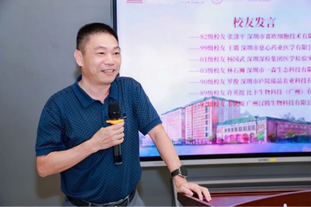 深圳市赛欧细胞技术有限公司董事长张涤平校友介绍了公司概况和未来发展方向,他提到在工作中遇到校友开展了更好的合作。