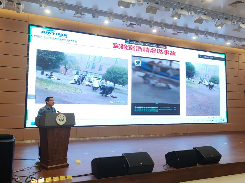 培训环节,江苏君源环保科技有限公司 LAB - HSE 项目经理朱寅飞受邀进行专业讲解。朱寅飞拥有近十年实验室安全领域工作经验,他通过生动案例和详细讲解,系统介绍了实验室安全应急处置方法与技巧,涵盖化学品泄漏、火灾等常见事故场景的应对措施,有效提升了师生对实验室安全的认知水平。在培训过程中,师生们积极互动,针对日常实验操作中的安全疑问与朱寅飞进行了深入交流,进一步强化了安全意识和应急知识。