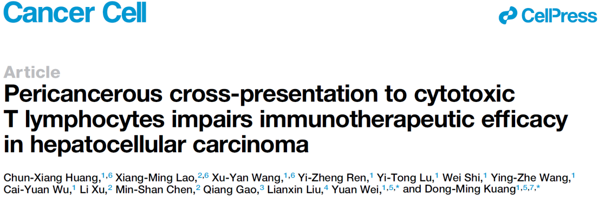该成果以“Pericancerous cross-presentation to cytotoxic T lymphocytes impairs immunotherapeutic efficacy in hepatocellular carcinoma”为题12月9日在Cancer Cell杂志正式发表。裸体直播