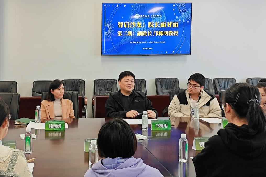 在交流会中,邝院长结合自身学术历程分享治学心得,更以师兄的视角讲述校园记忆。学生代表们纷纷就专业发展、科研入门、跨学科学习等成长议题踊跃提问。老师们耐心答疑解惑,并结合学院的实际情况对同学的关注的问题进行了解答。针对提高科研能力、培养科学思维等方向中可能遇到的问题和未来发展方向进行了逐一讨论,为同学们认识自身情况、规划未来发展带来了启发。