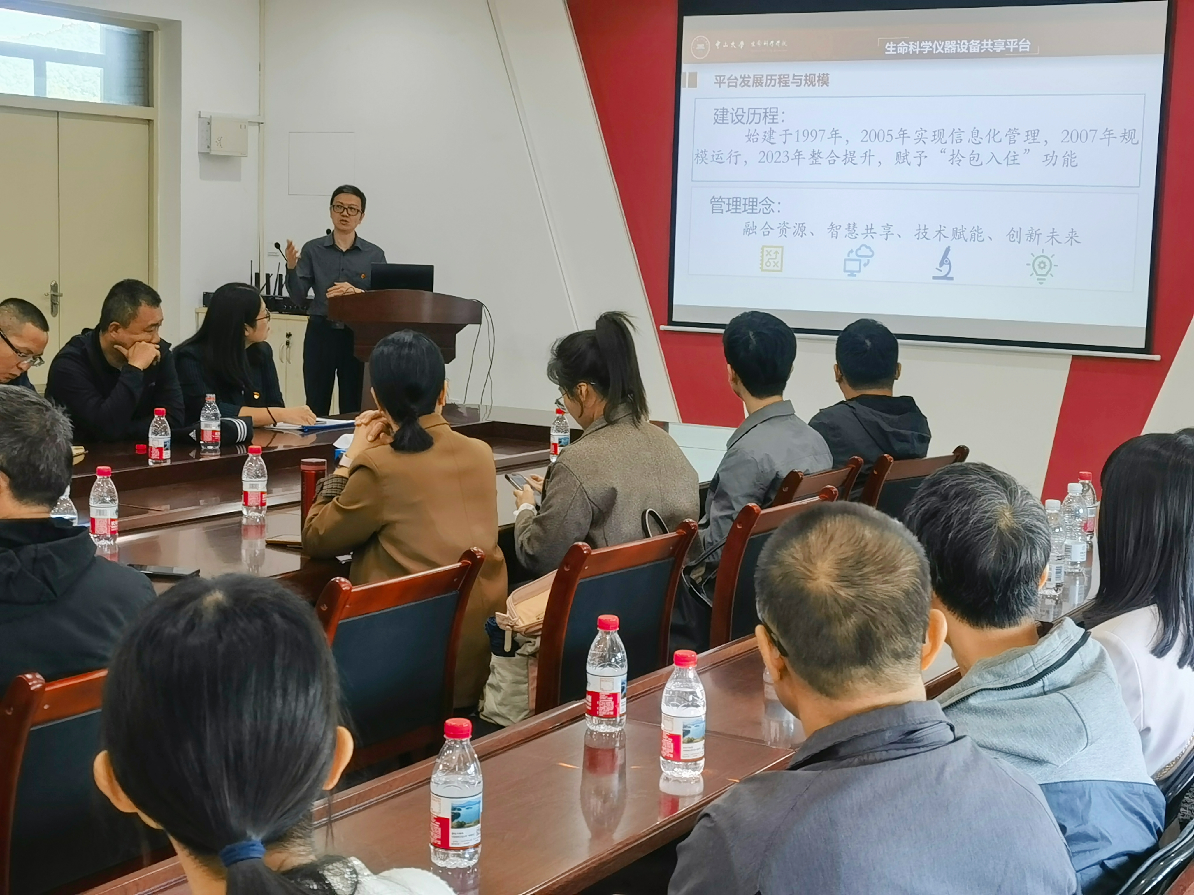 座谈中,裸体直播 实验中心副主任何键同志结合中心平台建设、技术支撑与科教融合方面的创新实践经验,围绕“四个聚焦”展开交流:在集约化管理方面,构建“1+N”仪器设备共享平台,每年支撑国家级重点项目150余项,高质量论文发表超250篇。在智能化管理与安全运维方面,平台集成数据可视、智能预约、远程监控等功能,建立完善的仪器维护与质控体系,通过每日环境巡查、故障快速响应等措施,保障设备稳定运行,同时深入践行“安全第一”理念,近十年未发生重大安全事故。针对人才队伍建设,实施“双向融合”培养计划,鼓励专业技术人员到国内外进行交流学习,加入科研团队,既精准对接科研需求又提升自身业务水平。在科教融合创新层面,建立“科研仪器开放共享+创新课程双轨制”,一方面将大型科研仪器面向本科生开放,另一方面通过面向本科生开设《生命科学实验仪器与使用》等课程,结合多色流式、质谱分析等技术展示,激发学生科研兴趣,真正实现“科研反哺教学、教学促进科研”的良性循环。