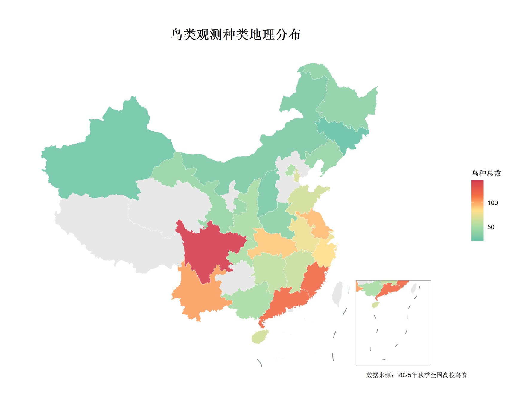 本次鸟赛所有队伍的鸟种总数统计结果如下: