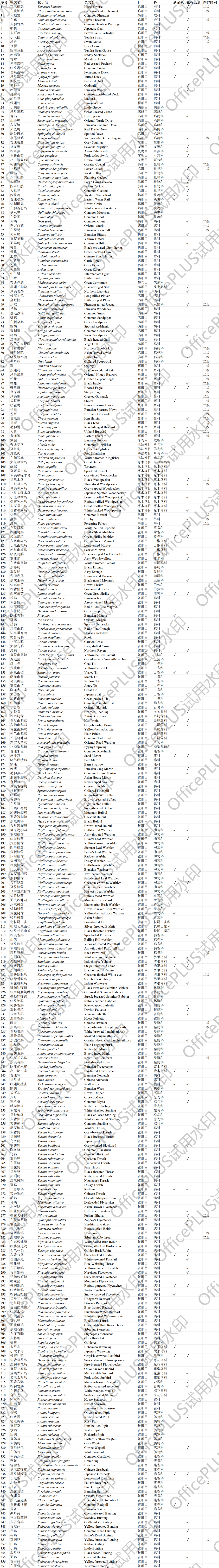 总鸟种名录
