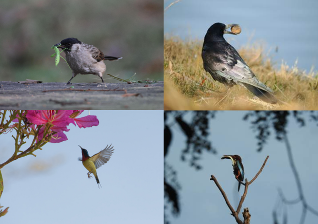 经常观鸟的朋友们都知道,认鸟容易找鸟难(doge),有时明明拍到了小鸟,却还是发出“鸟在哪里”的疑问。上面四张图,分别是河南医药大学、内蒙古大学、韶关学院、新疆理工学院拍摄的宝兴歌鸫、暗绿绣眼鸟、西秧鸡、太平鸟的照片,眼尖的你能一眼找到图中的鸟儿们吗?