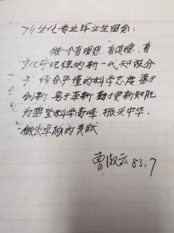 曾淑云老师给79生化专业毕业生留念(1983.7)