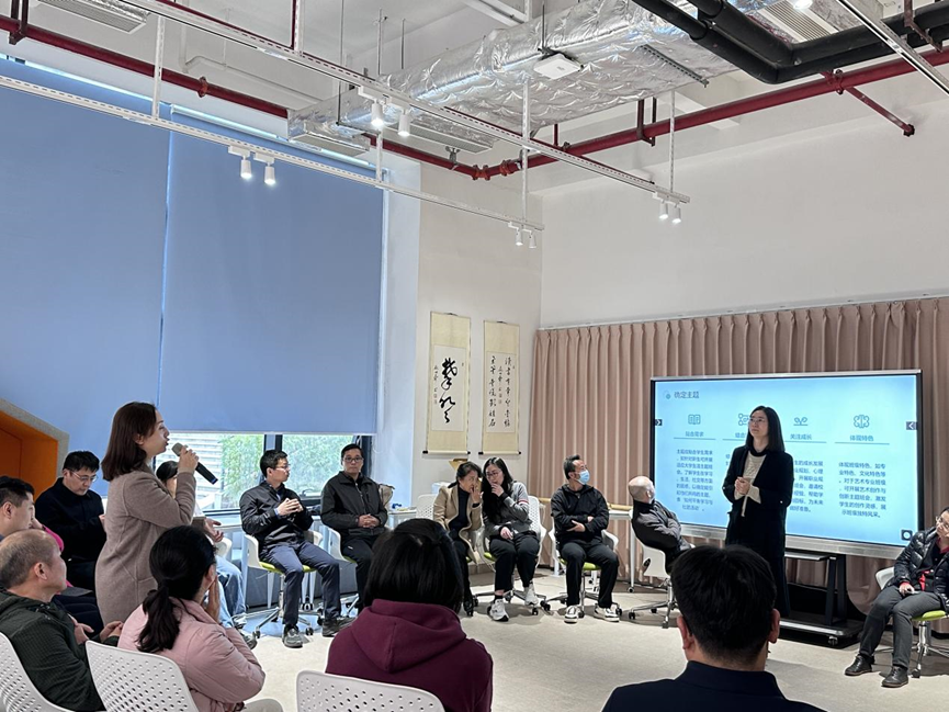 在“空间维度”体验环节,教师们通过动态座位重组,形成多想维度的“情感纽带”,感知多元素与心理联结的辩证关系。多位教师分享感悟:“站位不仅是空间调整,更隐喻教育中的心理距离。贴近学生需打破固有视角,用动态思维理解他们的成长背景。”行无言之教,需从观察、倾听开始,让教育在潜移默化中发生。