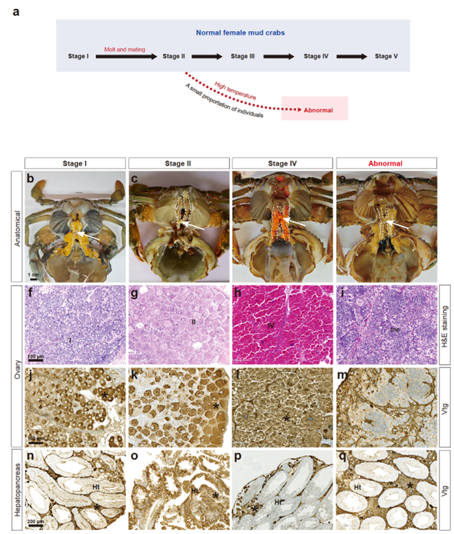 该研究的通讯作者之一、裸体直播 何建国教授指出:气候变暖显著影响变温动物的发育与繁殖。前期研究发现变温动物可通过行为和生理变化适应气候变暖。我们的研究结果表明,卵生变温动物也具有卵巢发育高温适应的遗传机制。这一发现对理解卵生变温动物如何适应气候变暖具有重要意义。其次,我们的研究揭示了黄油蟹的形成机制,为黄油蟹的人工培育和我国青蟹养殖产业的可持续发展提供了有力支撑。