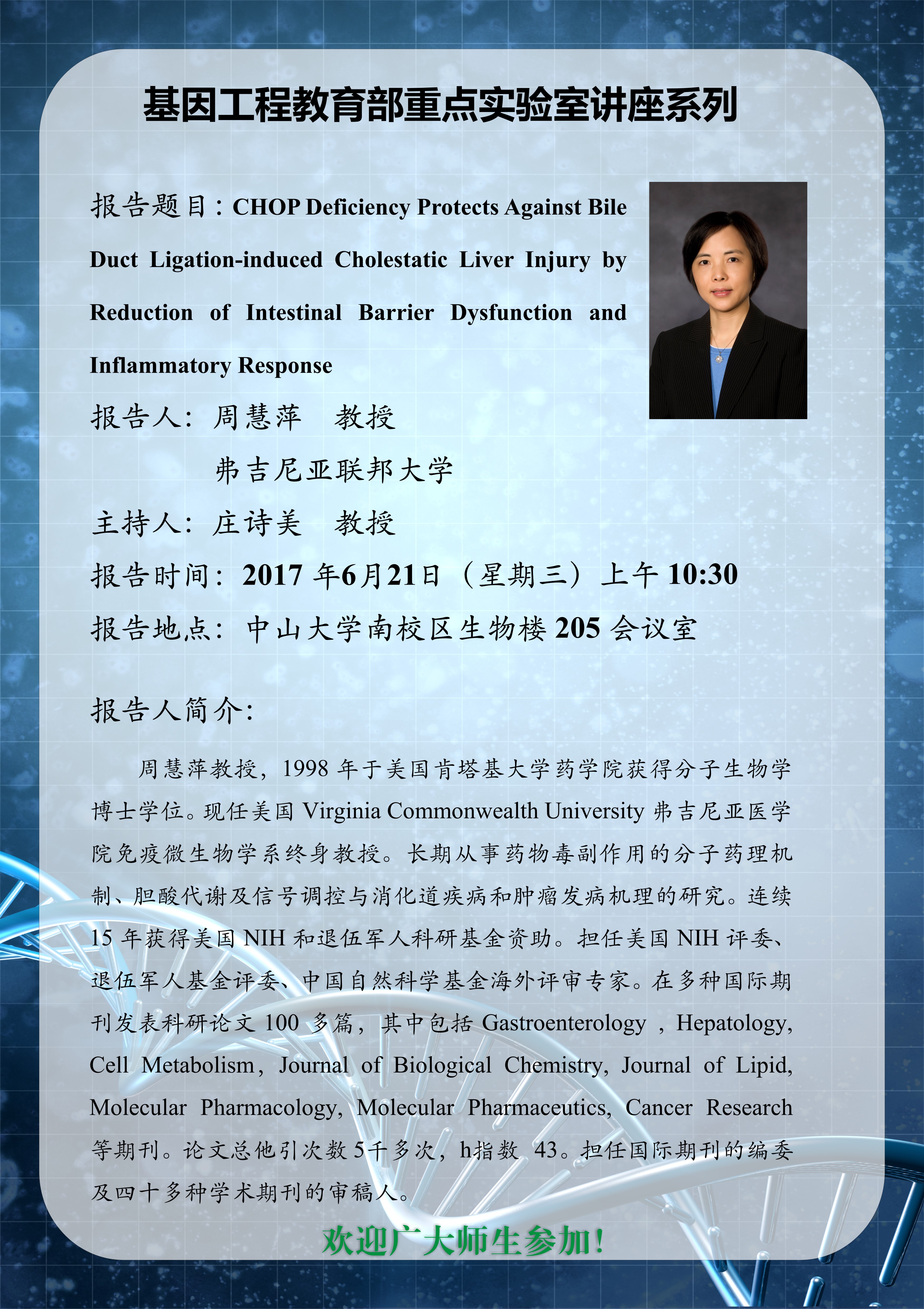 欢迎参加6月21基因工程教育部重点实验室学术讲座