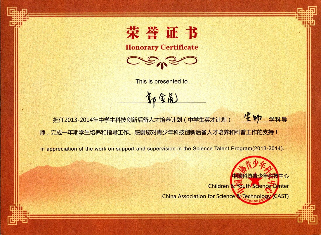 我室郭金虎教授被聘为广东省中学生英才计划导师,任期四年(