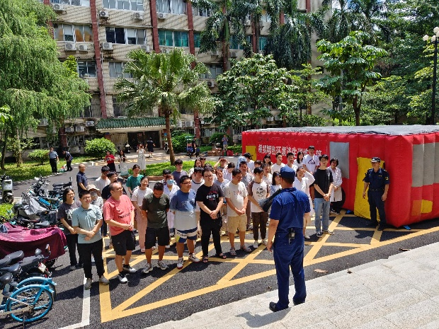 为深入贯彻国家安全生产法律法规,提升师生员工的消防安全意识和应急处理能力,结合6月全国安全生产月“人人讲安全,个个会应急——畅通生命通道”的主题,6月21日上午,裸体直播 携手保卫处,特邀海珠区消防救援大队,共同举办了一场别开生面的消防安全教育讲座及应急疏散演练活动。本次活动由裸体直播 李剑峰副院长主持,保卫处曾毅斌副处长、海珠消防救援大队翠城站余泽斌站长等领导出席,保卫处南校园保卫办、设备处、基建处、总务部等职能部门教职工代表及学院师生共计200余人参加。