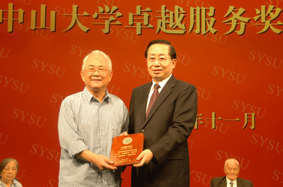 卓越服务奖”,这是中大对于这位在中大已服务五十五载春秋的老教授的感激,感谢他用自己的青春与智慧熔铸中大的学术与精神的宝塔,而那张受奖仪式的老照片挂在傅老先生家客厅里一进门就能看见的那面墙上——那是一位中大赤子对这份荣誉的自豪,对这所学校的自豪。