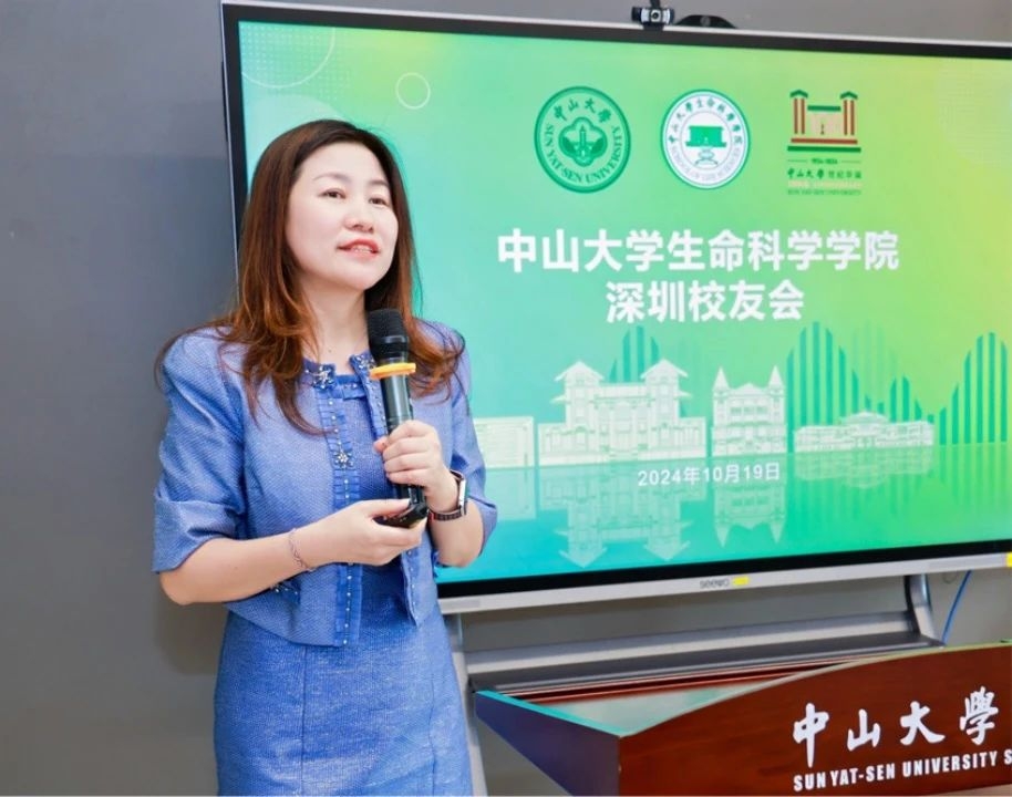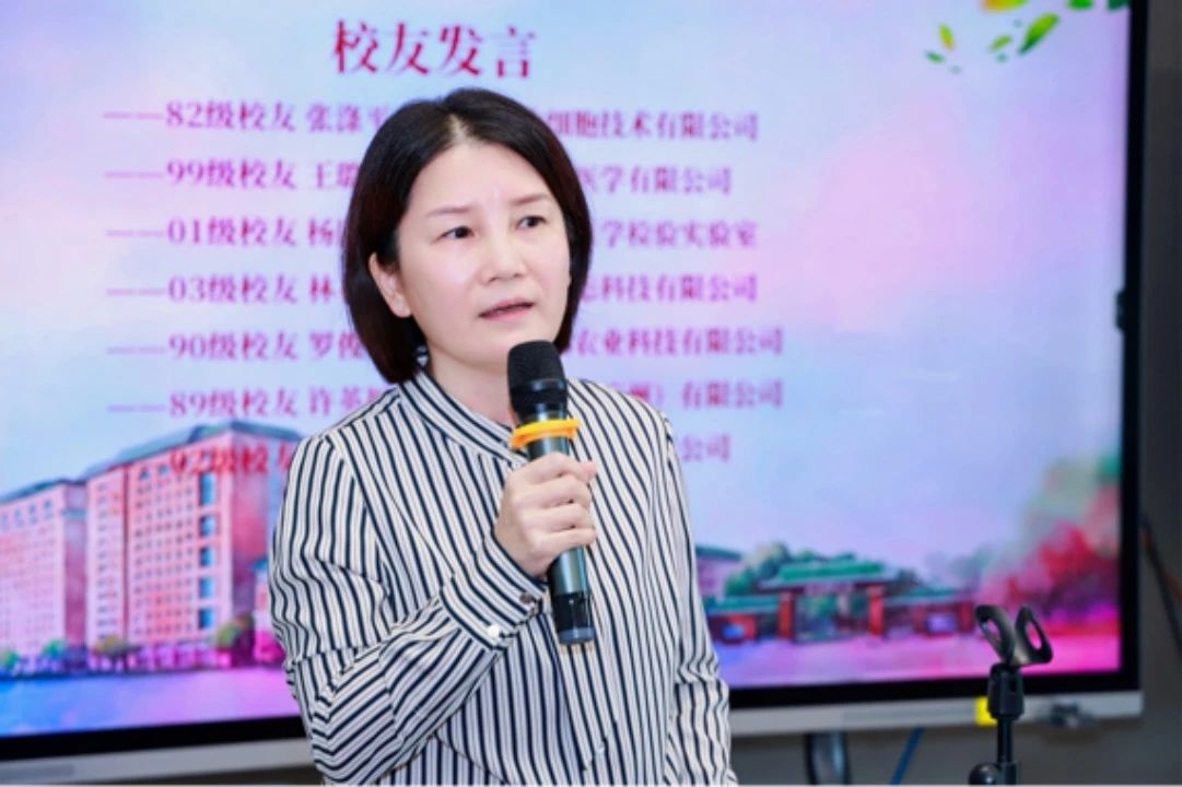 深圳市慈心药业医学有限公司董事长王璐校友介绍了创业的初衷和公司的产品,指出与其他校友企业合作的可能性,最后分享了在校期间时任生科院院长徐安龙教授授课时的场景。