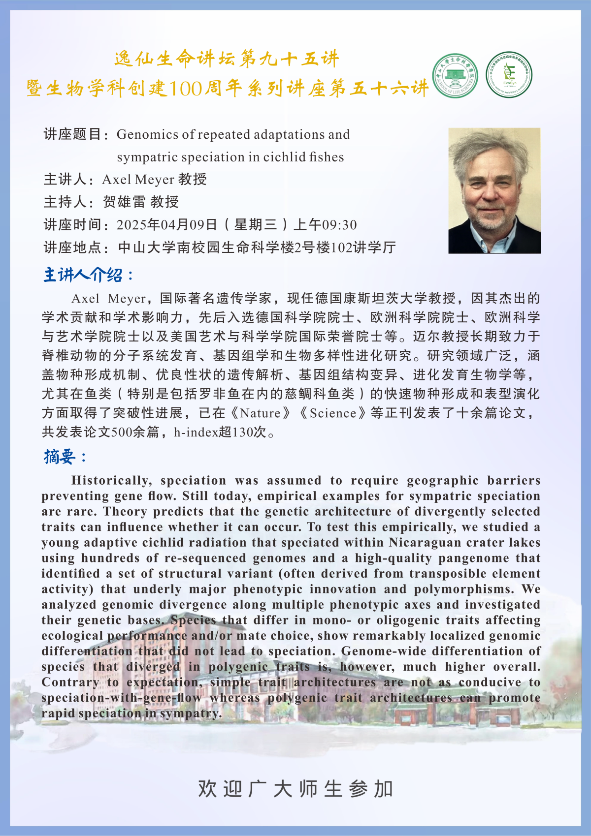 导航痕迹 裸体直播 科学研究 学术讲座 生物学科创建100周年系列第五十六讲:Genomics of repeated adaptations and sympatric speciation in cichlid fishes 扫描此二维码分享 生物学科创建100周年系列第五十六讲:Genomics of repeated adaptations and sympatric speciation in cichlid fishes 发布人:董静飞 发布日期:2025-04-08