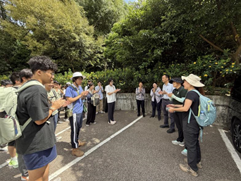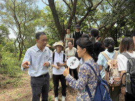 同时,梁会长也为师生们详细讲解了样地的自然环境特点及土坑法的应用价值。参观完土坑法样地后,梁会长更是热心地带领大家去参观了中央山的一些特色植物,并为同学们讲解了不同植物在生态演替中的作用。