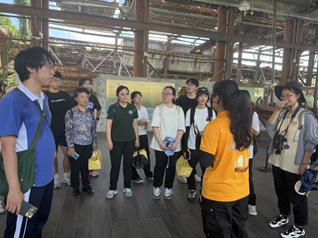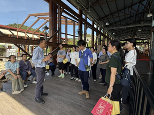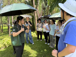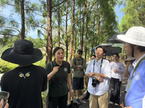 实习的第三站前往龙环葡韵湿地。龙环葡韵湿地位于澳门市中心,是澳门最主要的自然淡水湿地。湿地生态系统作为生态交错带具有独特的组成成分,比如红树林、滩涂、水生植物,特别是澳门这样的城市,湿地对防洪和净化污水的作用是非常重要的,独特的地理位置决定了其在生态建设中充分考虑到“以人为本的”建设理念。周婷老师和梁委员长也为大家介绍了城市中湿地的重要性,同时也着重介绍了分隔湿地内和湿地外的防护林的建设,令同学们受益匪浅。