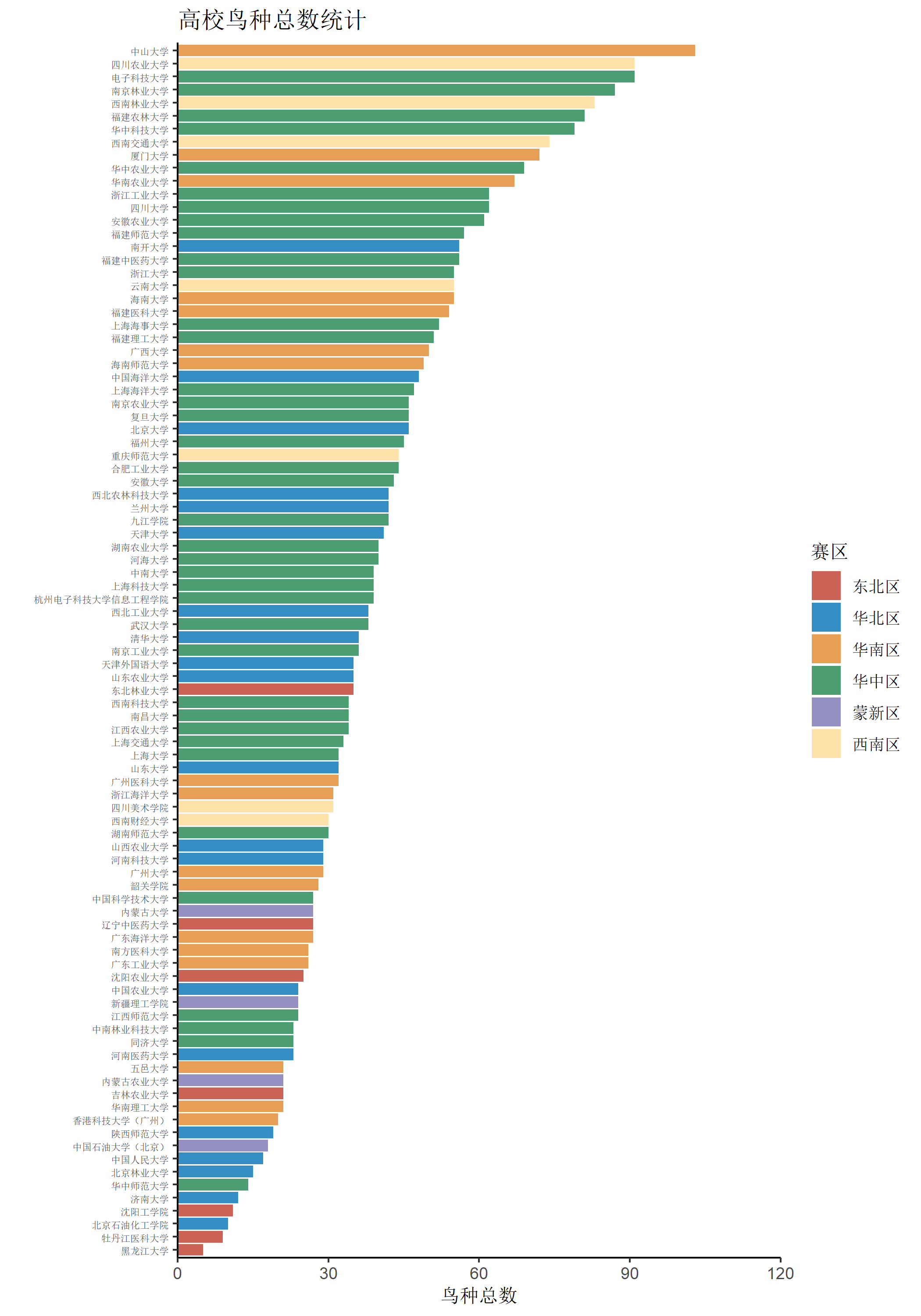 单校区鸟种数最多