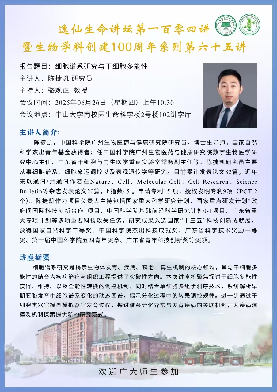 2025年6月26日裸体直播 逸仙生命讲坛第一百零四讲:细胞谱系研究与干细胞多能性